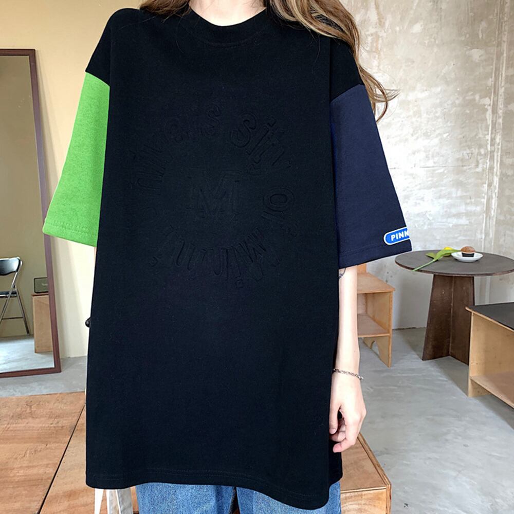 英字ロゴゆるT韓国 ビックTシャツ夏服 カジュアルトップス
