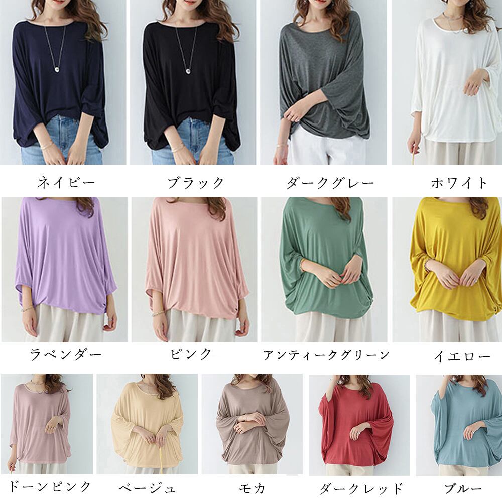 半袖 カットソー バットスリーブ ゆったり トップス 体型カバー モダール tシャツ 七分袖 無地 春夏 カジュアル
