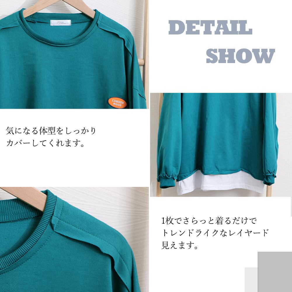 体型カバートップス 大きめtシャツ ゆったり レイヤード風 ビッグTシャツ カットソー 着やせ プルオーバー カジュアル