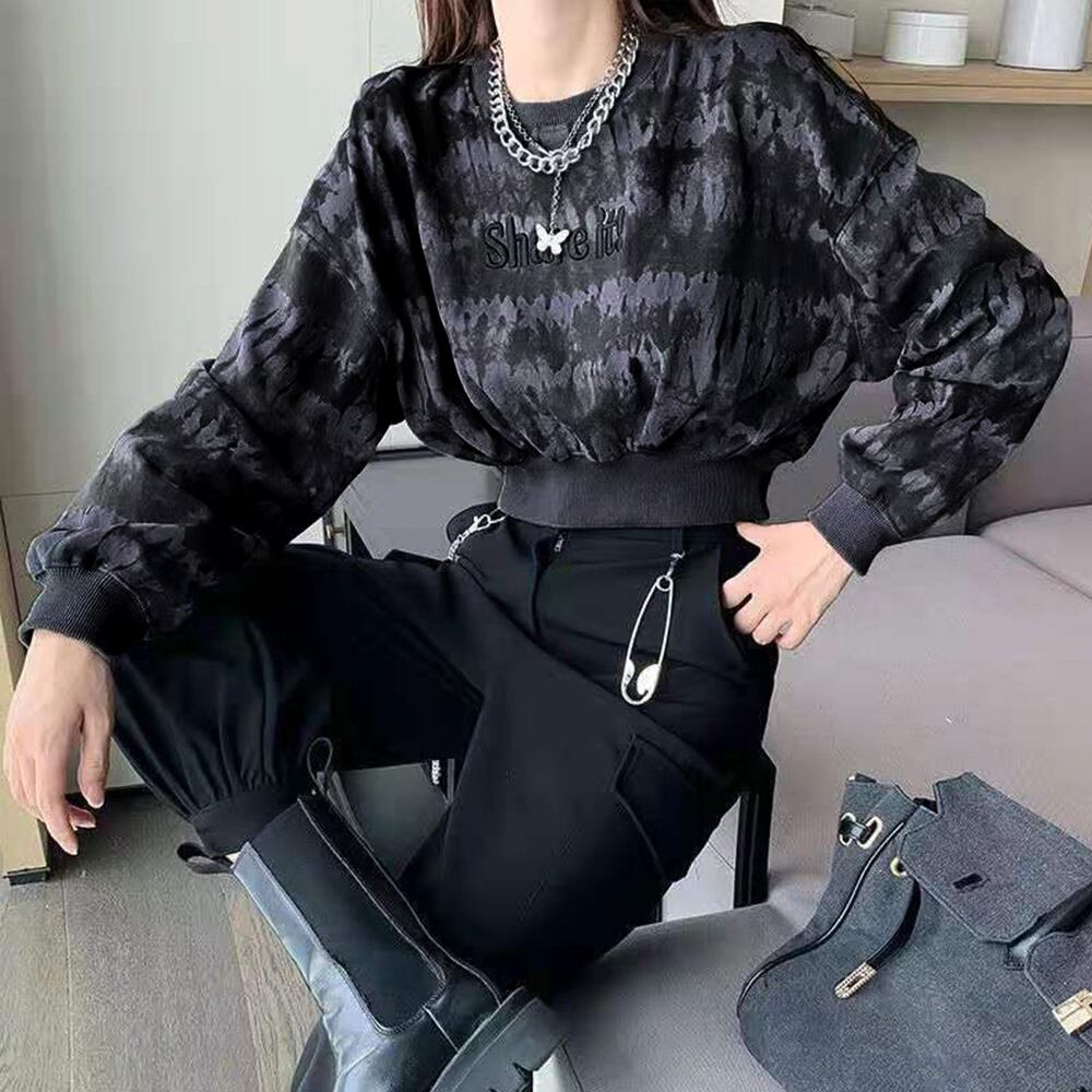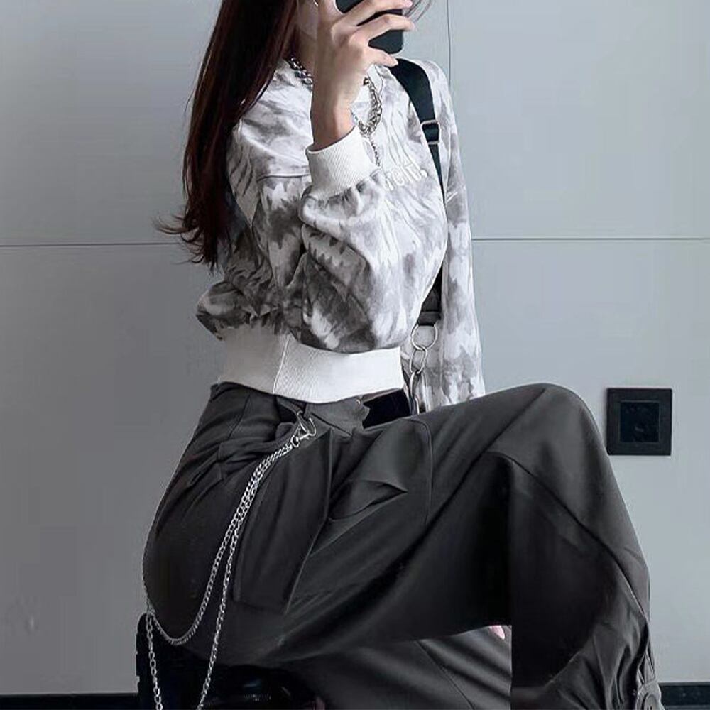 短めの丈感と長めの袖がポイントのタイダイ柄トップス
