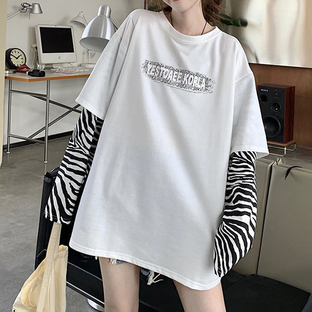 カットソー ゼブラ柄 ロゴTシャツ デイリー ゆったり 長袖トップス 春秋冬 オルチャン シンプル