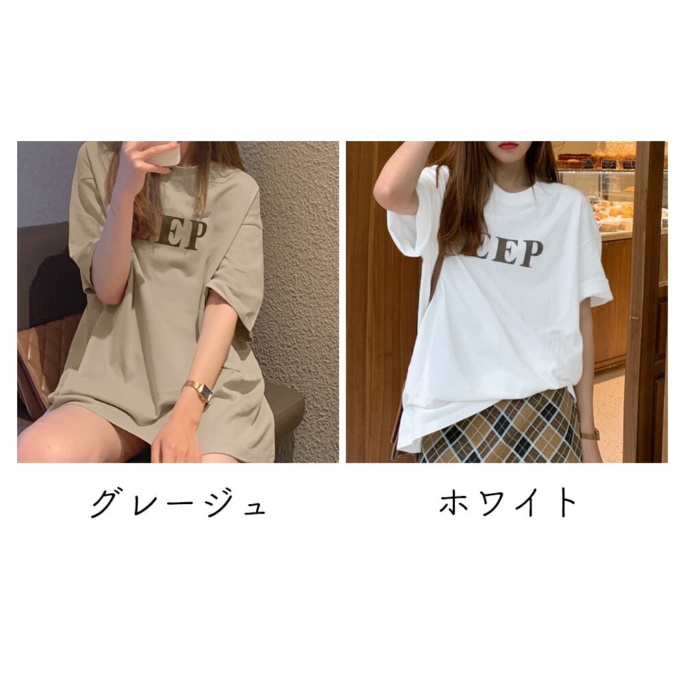 カットソー 夏 オルチャン 英字 ロング ゆったり カジュアル ストリート ルーズ 体型カバー 大人 人気 シンプル