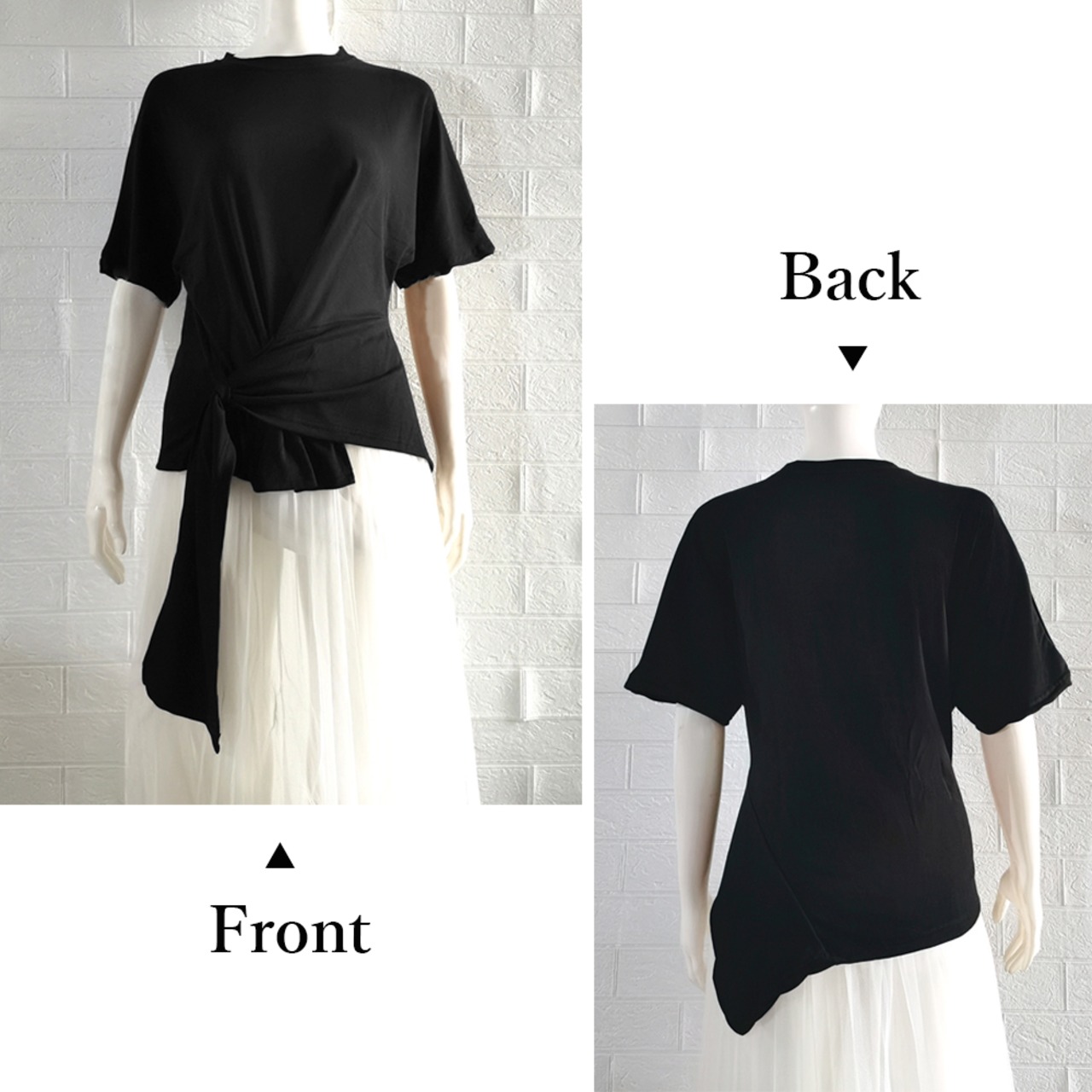 お腹周りの結びは魅力的なアシンメトリーデザインtシャツ