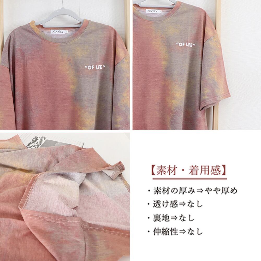 タイダイ柄染めtシャツ ゆったり 着やせトップス 体型カバー クルーネック 韓国ファッション カットソー夏服プルオーバー