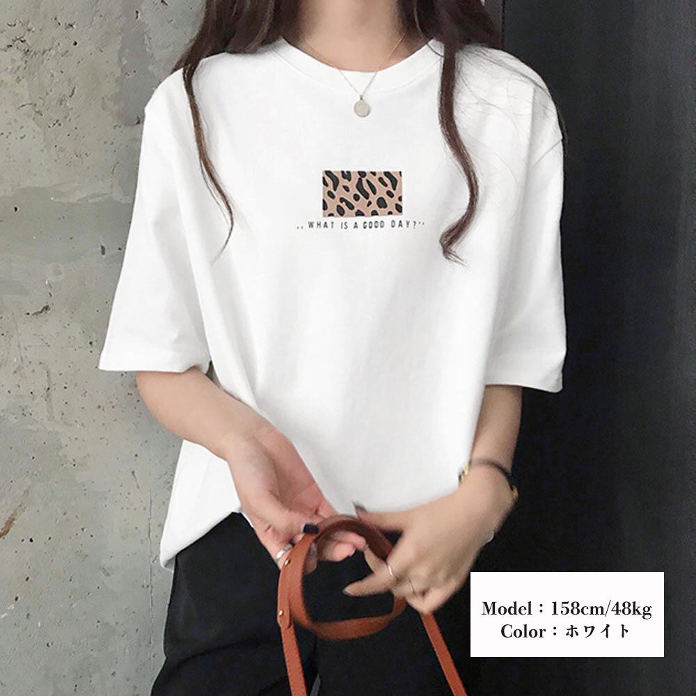 カットソー レオパード プリント 体型カバートップス フロントロゴt プルオーバー カジュアル おしゃれtシャツ 夏春秋