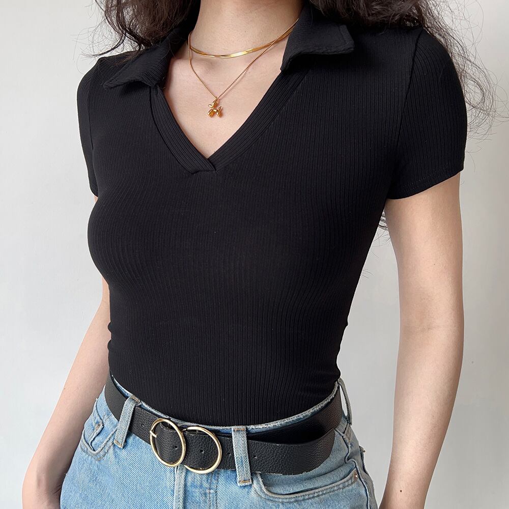 韓国 半袖 スリムフィットTシャツ 細見え ショート丈トップス 着やせ カジュアル無地tシャツ ストリート ダンス衣装黒