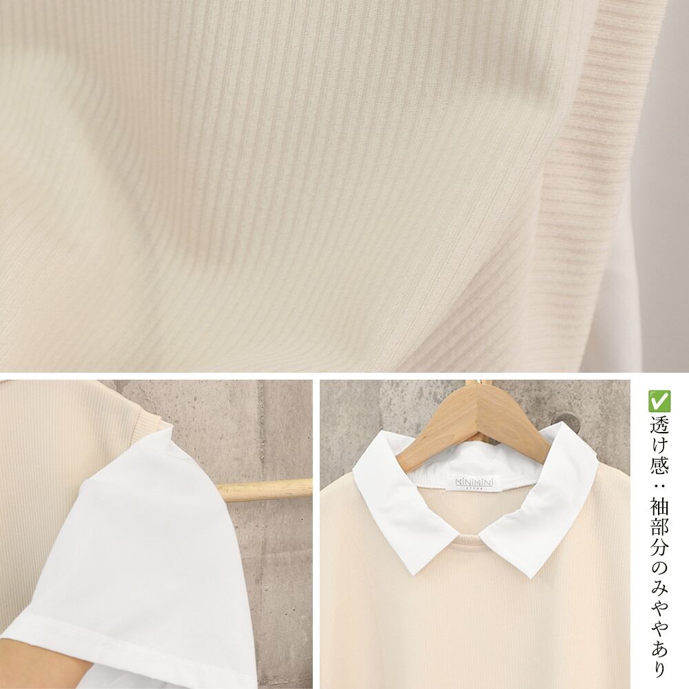 半袖カットソー通学 オフィスカジュアル 重ね着風Tシャツ夏