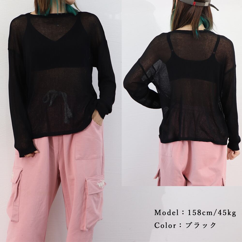 薄手 プルオーバー ゆったり シースルートップス 冷房対策 透け感 丸首カットソー 韓国 UV対策 ニットTシャツ 無地