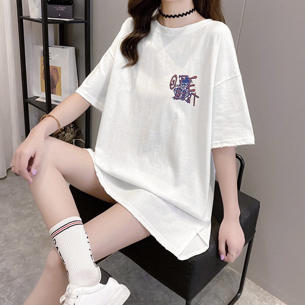 バックプリントTシャツ レディース オーバーサイズ カットソー オルチャン 韓国風 ロングtシャツ ビッグシルエット 白