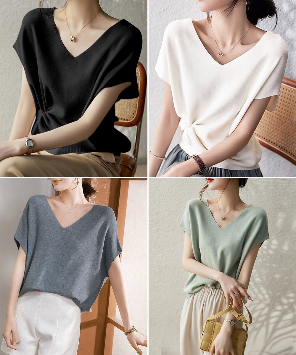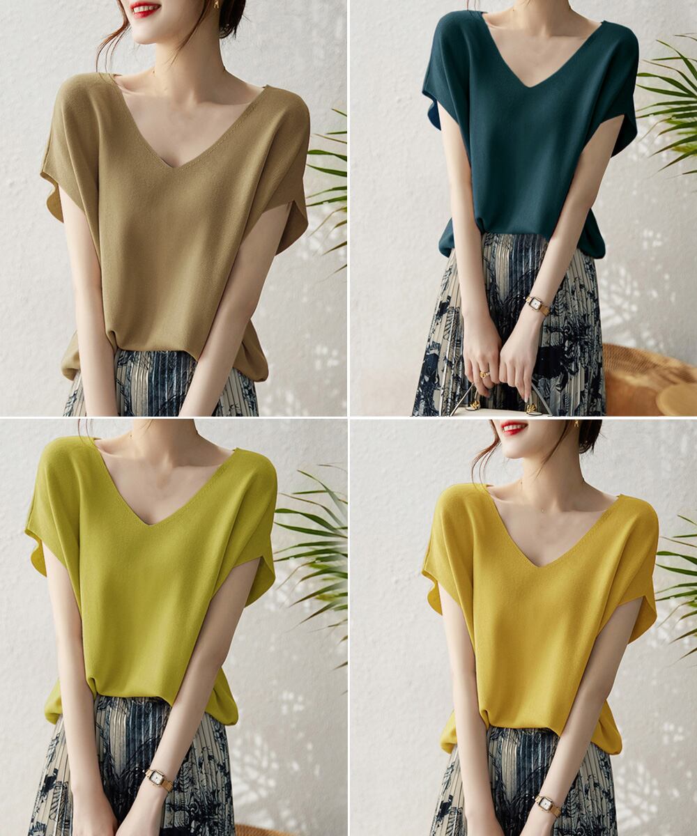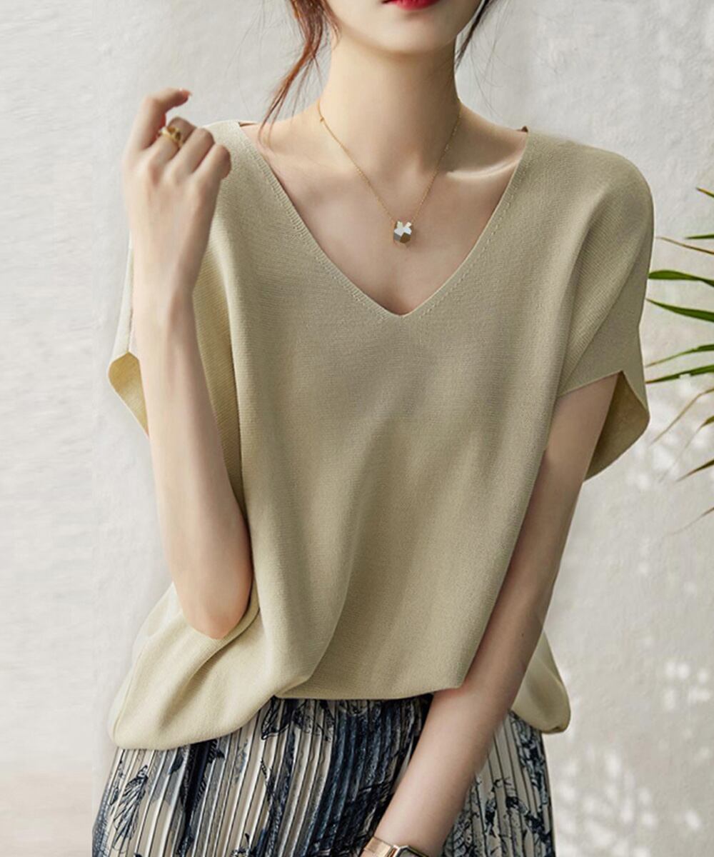 ドロップショルダー 上品清楚大人通勤服 夏プルオーバー無地