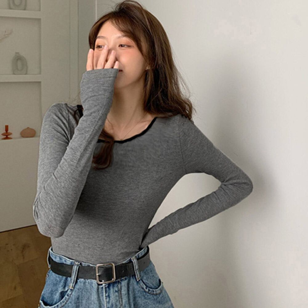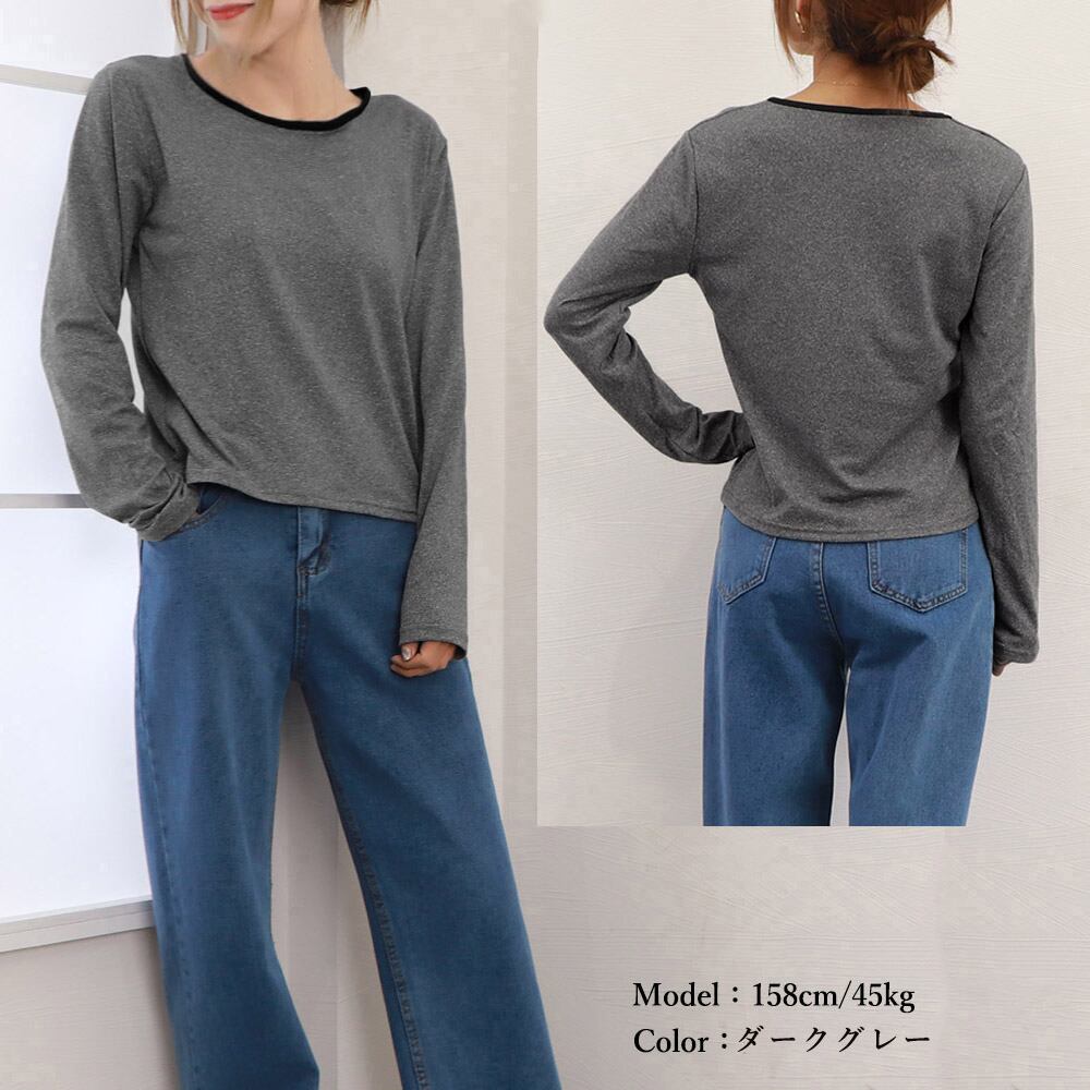 トップス シンプル カットソー 韓国風 クルーネック カジュアル 無地 春秋
