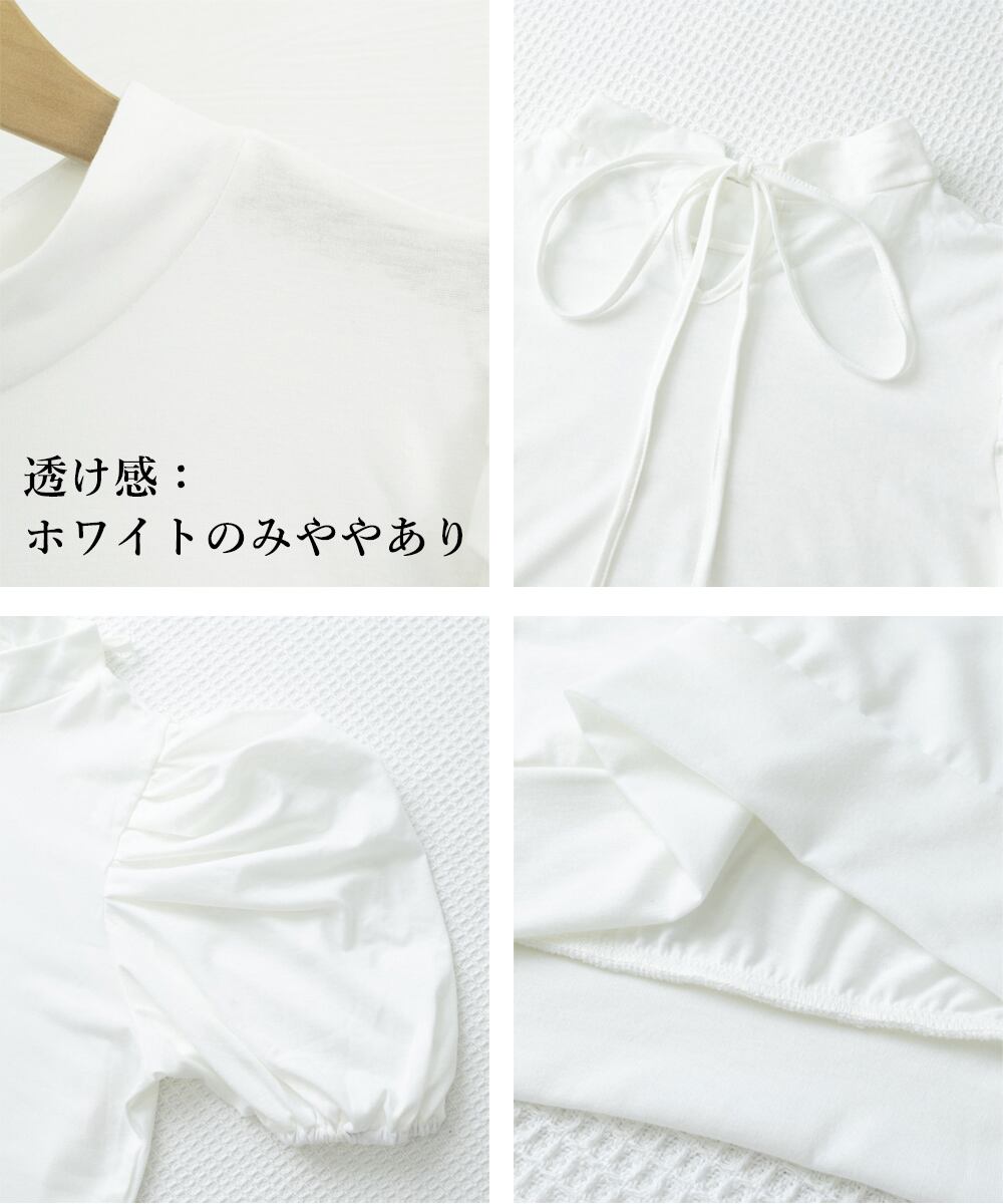 コットントップス白 タックスリーブ夏服 フェミニン服可愛い