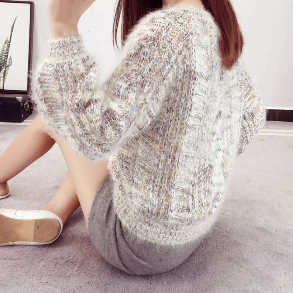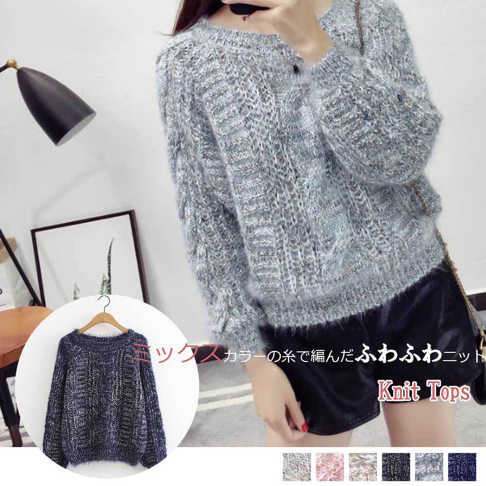 雰囲気のあるミックスカラーの糸で編んだふわふわニットです