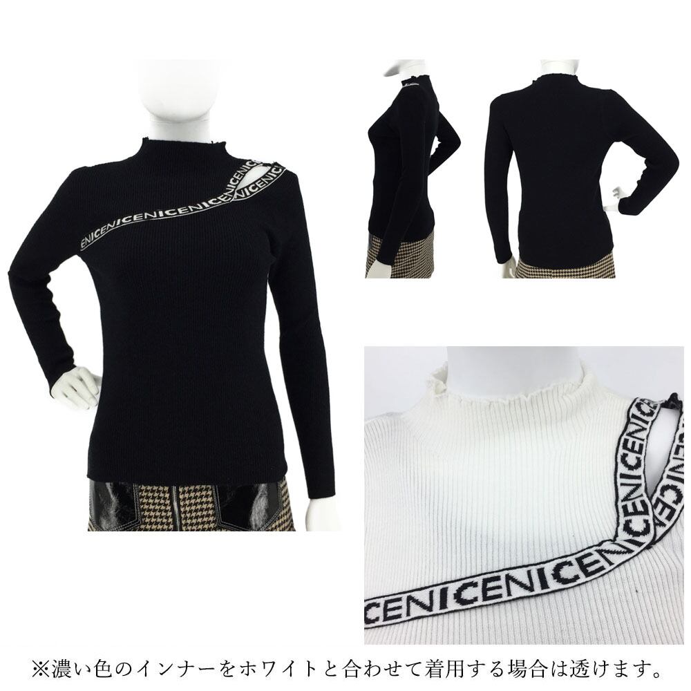 ニットソー レディース 長袖 リブニットトップス 肩出し タートルネック