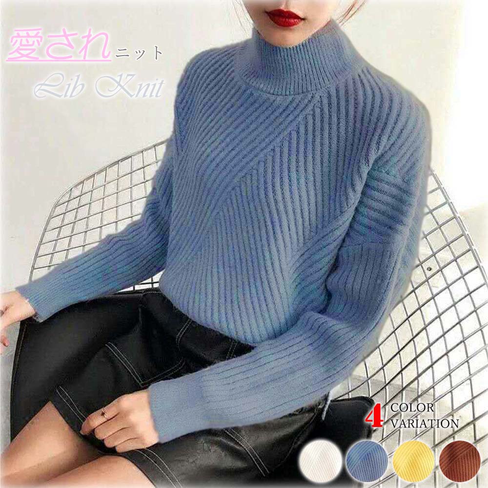 プチタートル リブ トップス レディース 秋冬 ゆったり セーター