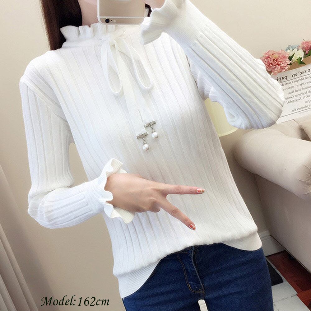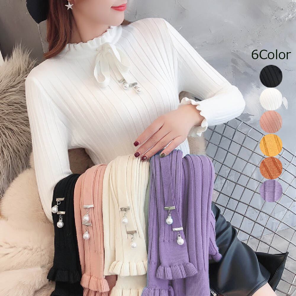 リボンつき フリルニット レディース ニットセーター きれいめ プルオーバー