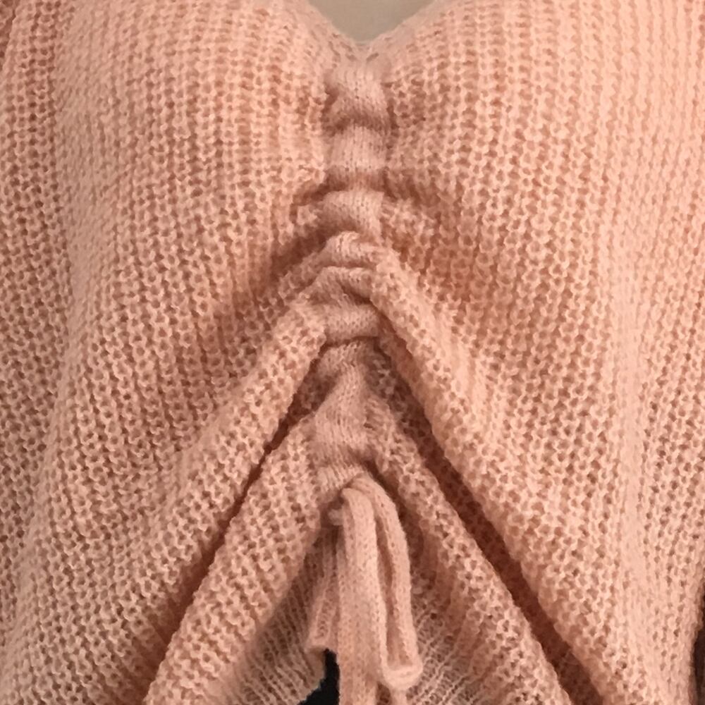 ニットトップス レデイース フロントギャザーセーターVネック トップス