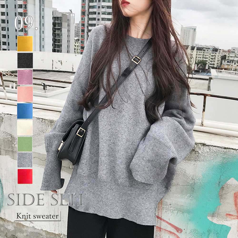 レディース ニット トップス 秋冬 サイドスリット セーター ニット