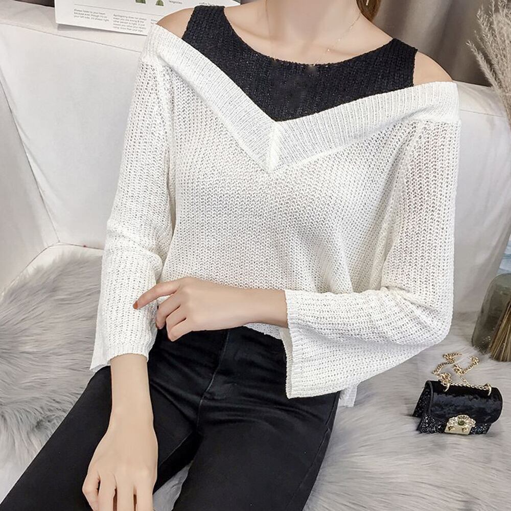 オフショルダー ニット レデイース Vネック 長袖 トップス バイカラー