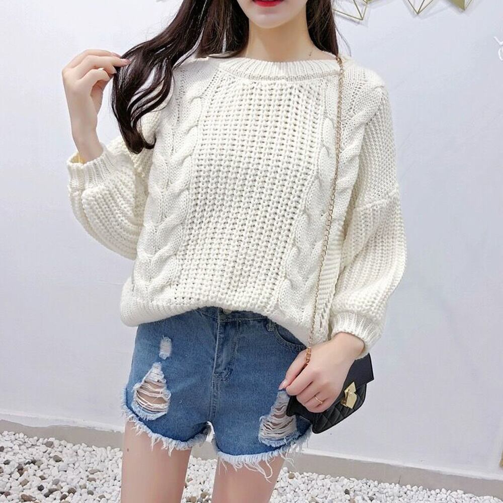 ケーブル編み ニットセーター レディース クルーネック ざっくりニット
