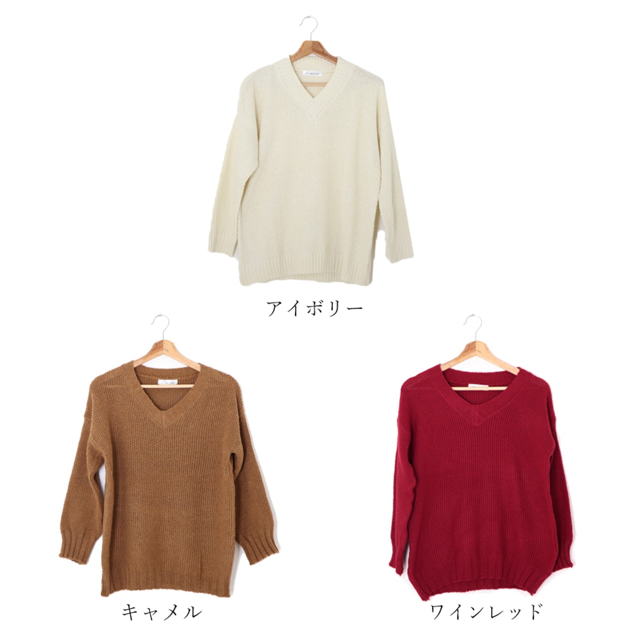 ゆるっと美デコルテ魅せするVネックざっくり編みニットトップス