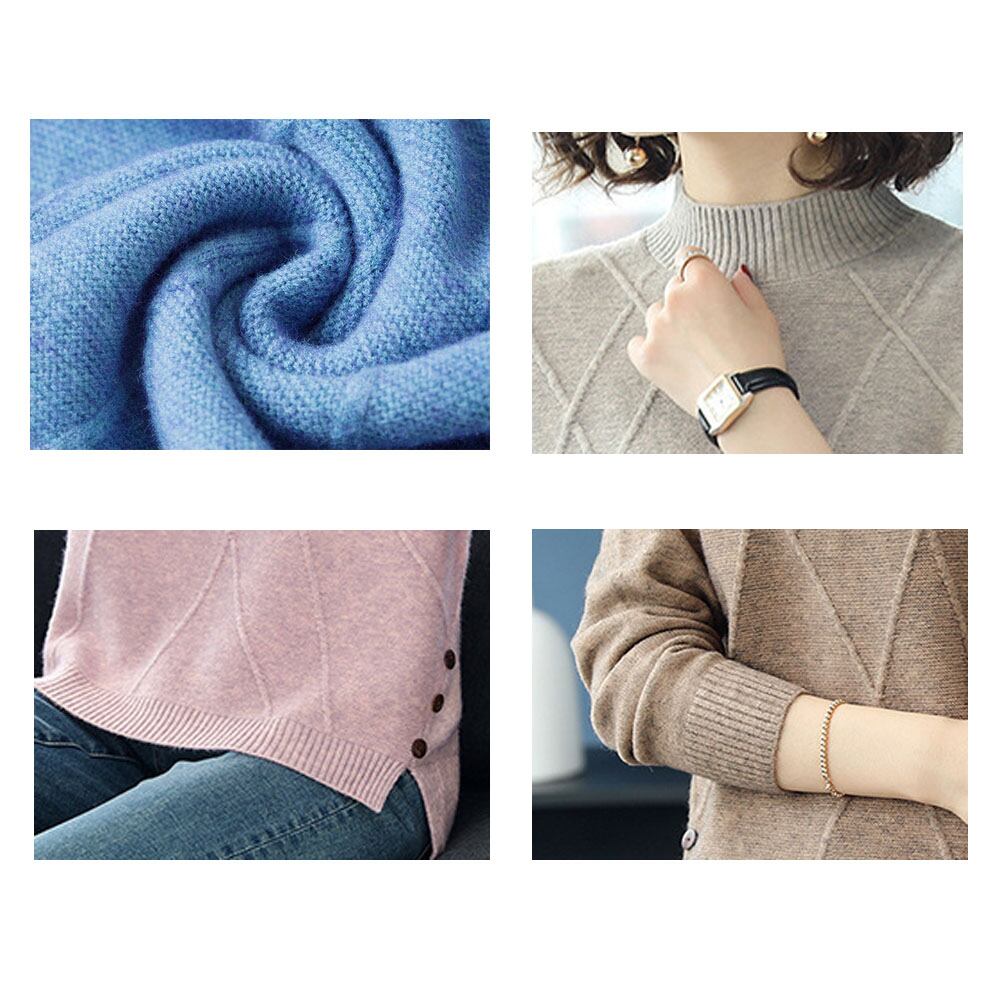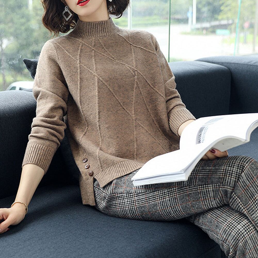 ニットトップス レディース 長袖 ハイネック 秋冬 ボタン付き プルオーバー