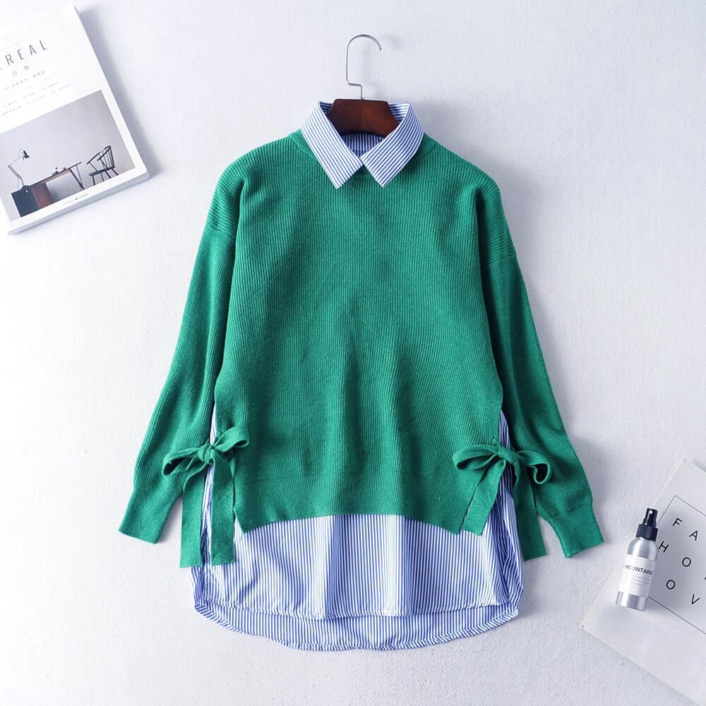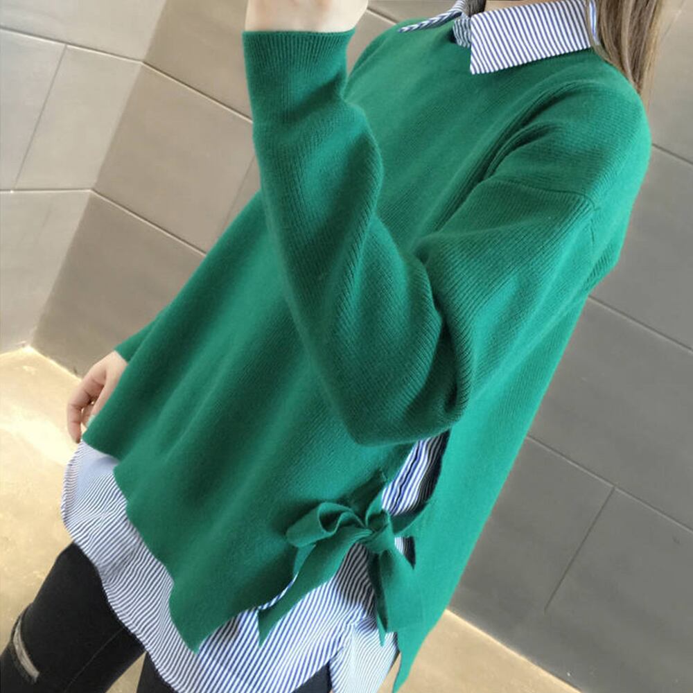 ニットトップス リボンセーター シャツレイヤード レディースファッション