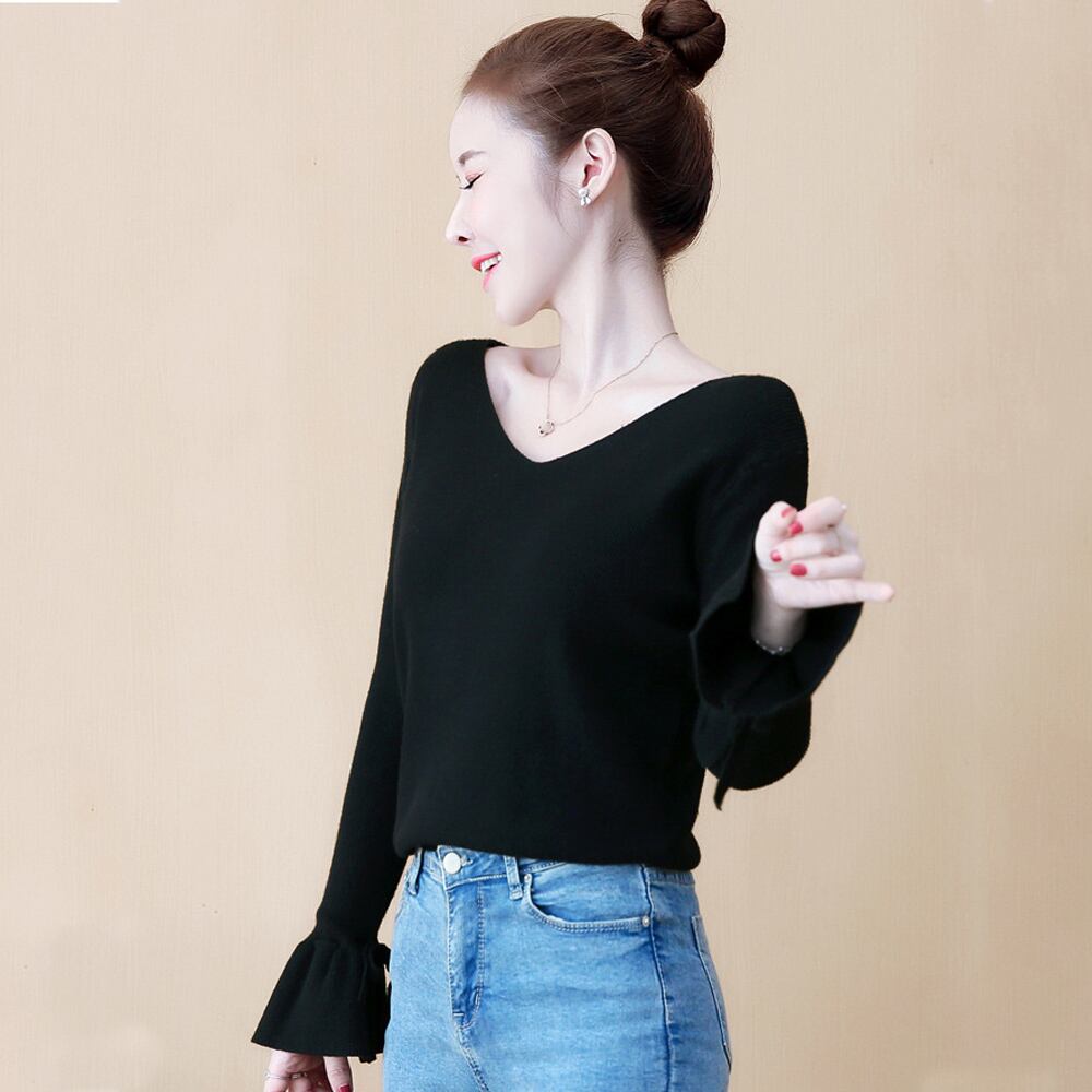 ニットトップス Vネック ニットセーター レディース バックリボン ニットソー
