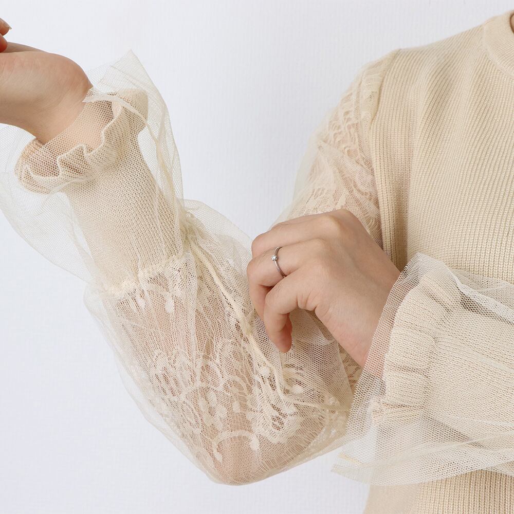 ボリュームのあるチュール素材の袖がキュートな印象を与えてくれるニットトップス