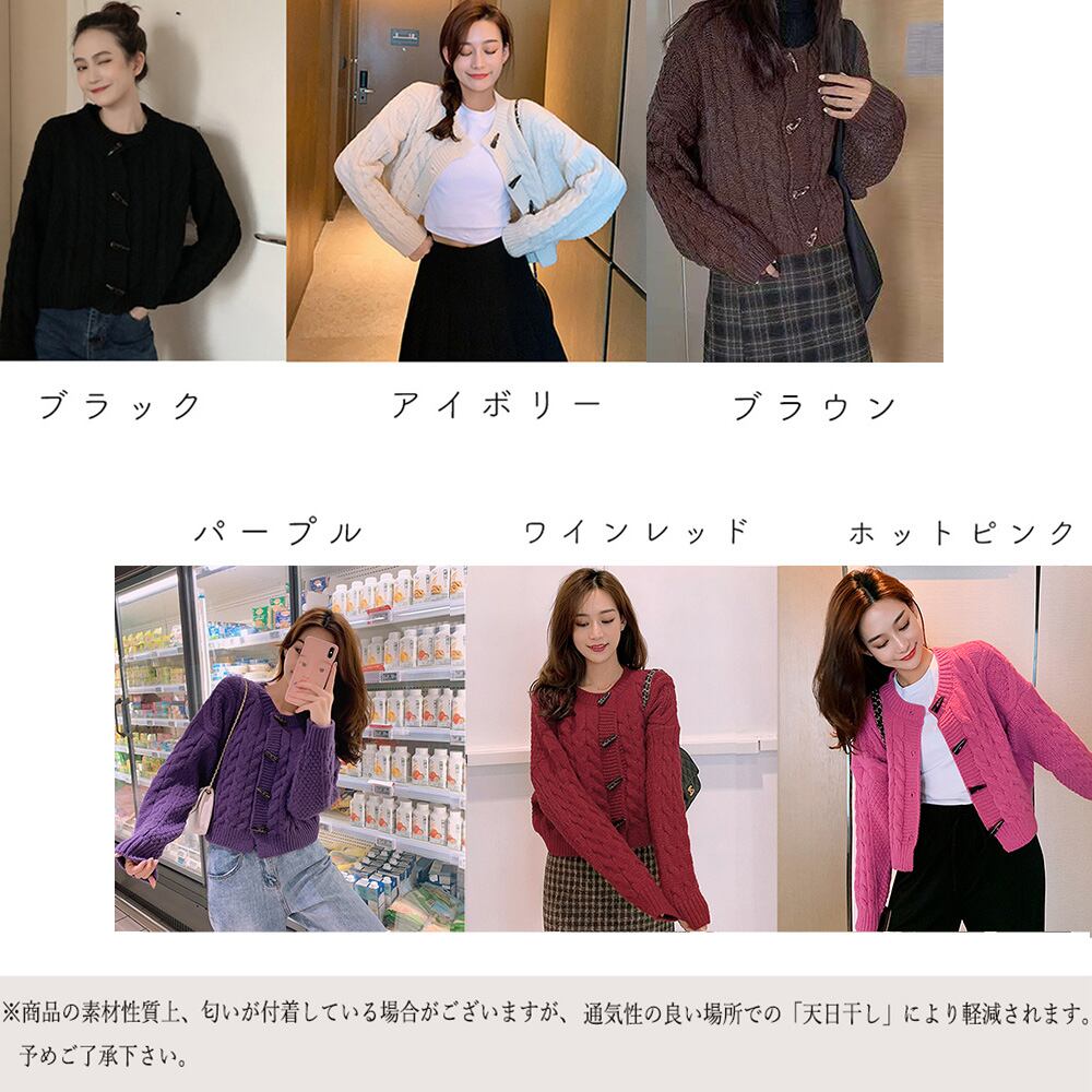 ショート ニットカーディガン レディース ツイスト ホーンボタン アウター