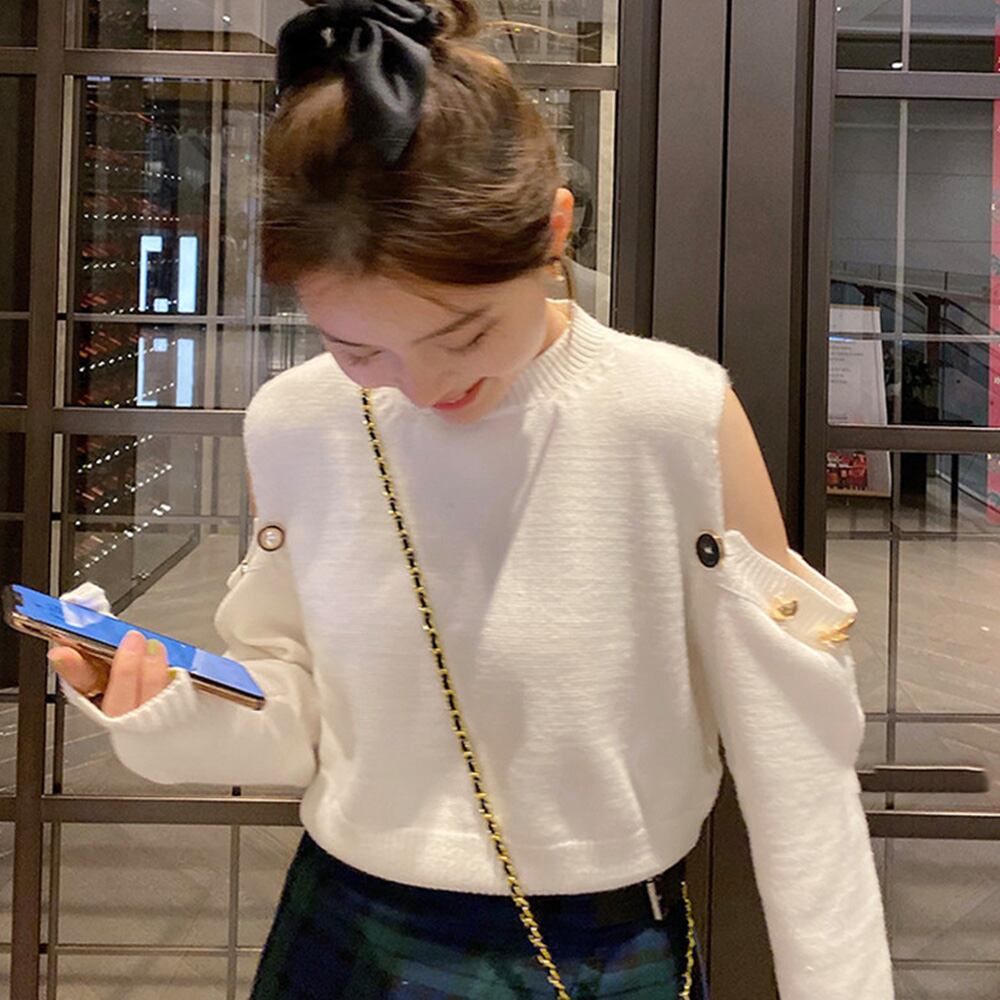 韓国ファッション 肩出し ニットセーター レディース 小柄 プルオーバー ニット オフショルダー 長袖 肩開き トップス