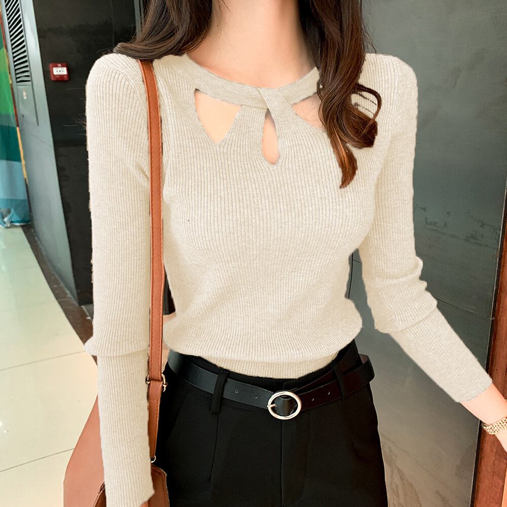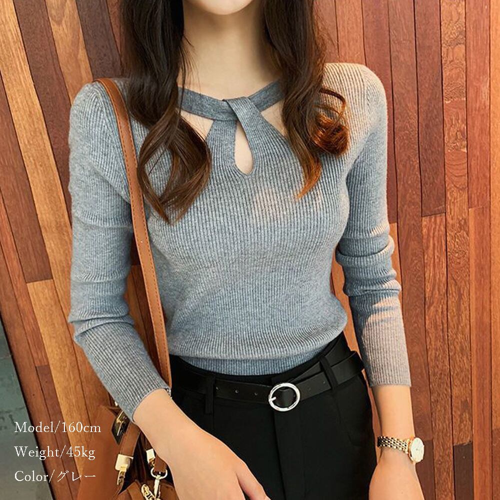 ツイスト タイトニット レディース リブ編み ニットトップス 着やせ