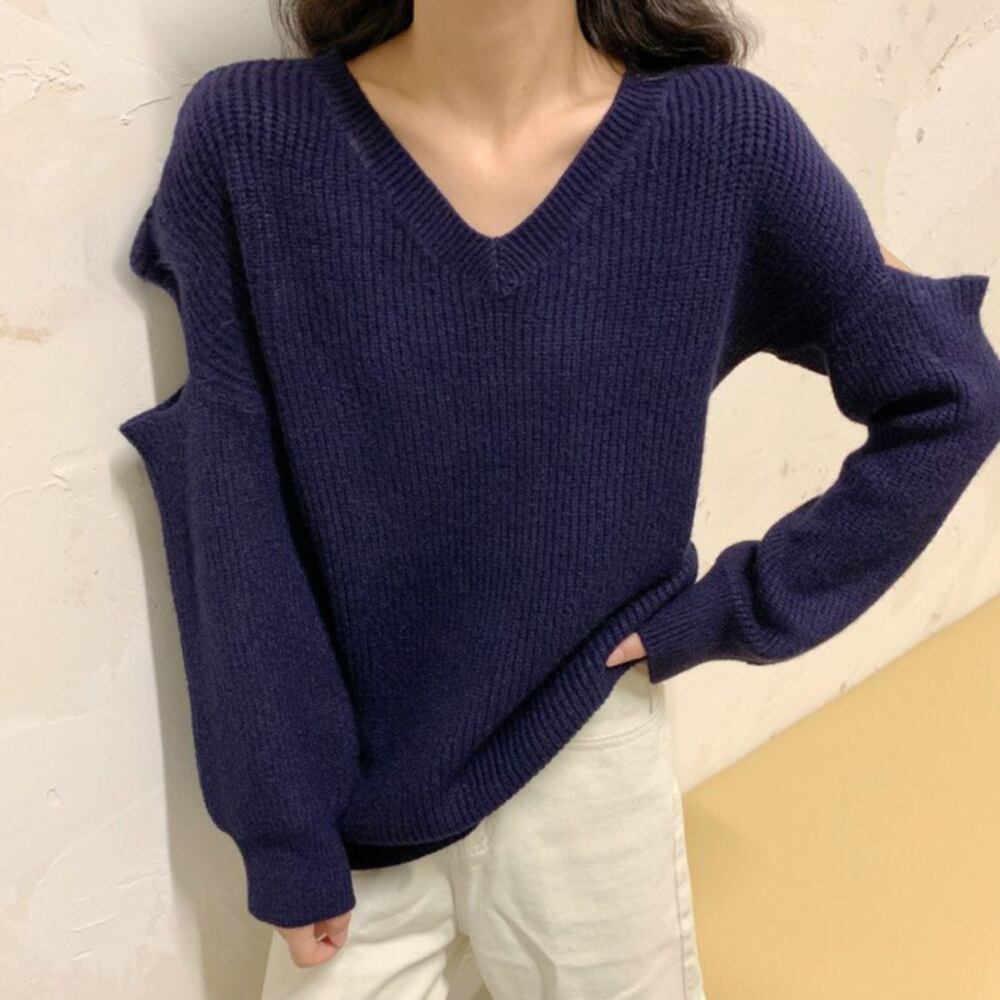 ニットセーター レディース Vネック 肌見せ ざっくりニット ゆったり