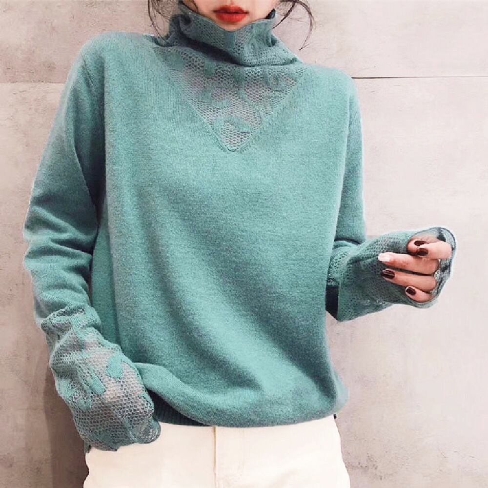 ニットセーター レースネック ニットソー 切り替え ニットウェア おしゃれ