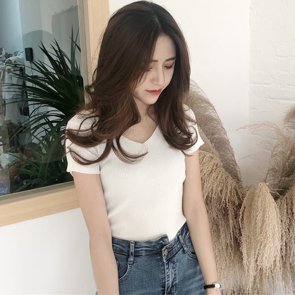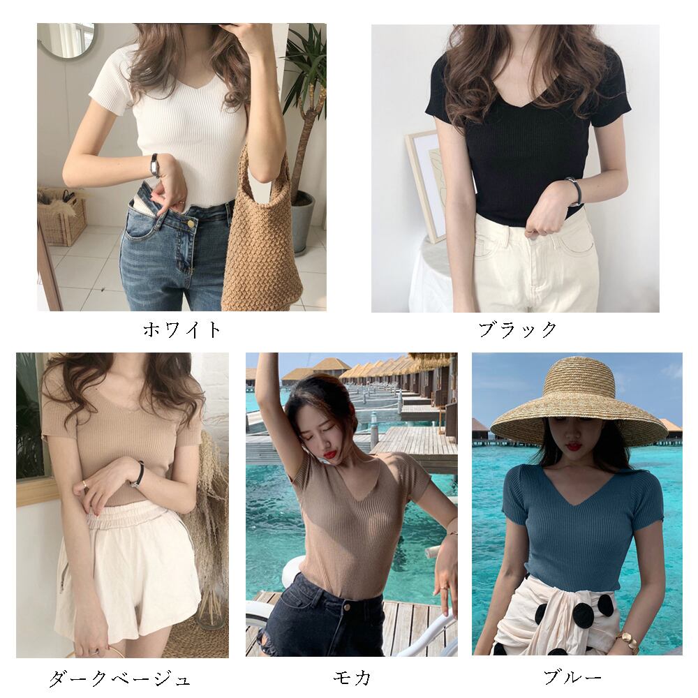 トップス ニットソー 半袖 ニットセーター レディース 薄手 春夏 リブニット 無地 着やせ トップス シンプル セーター
