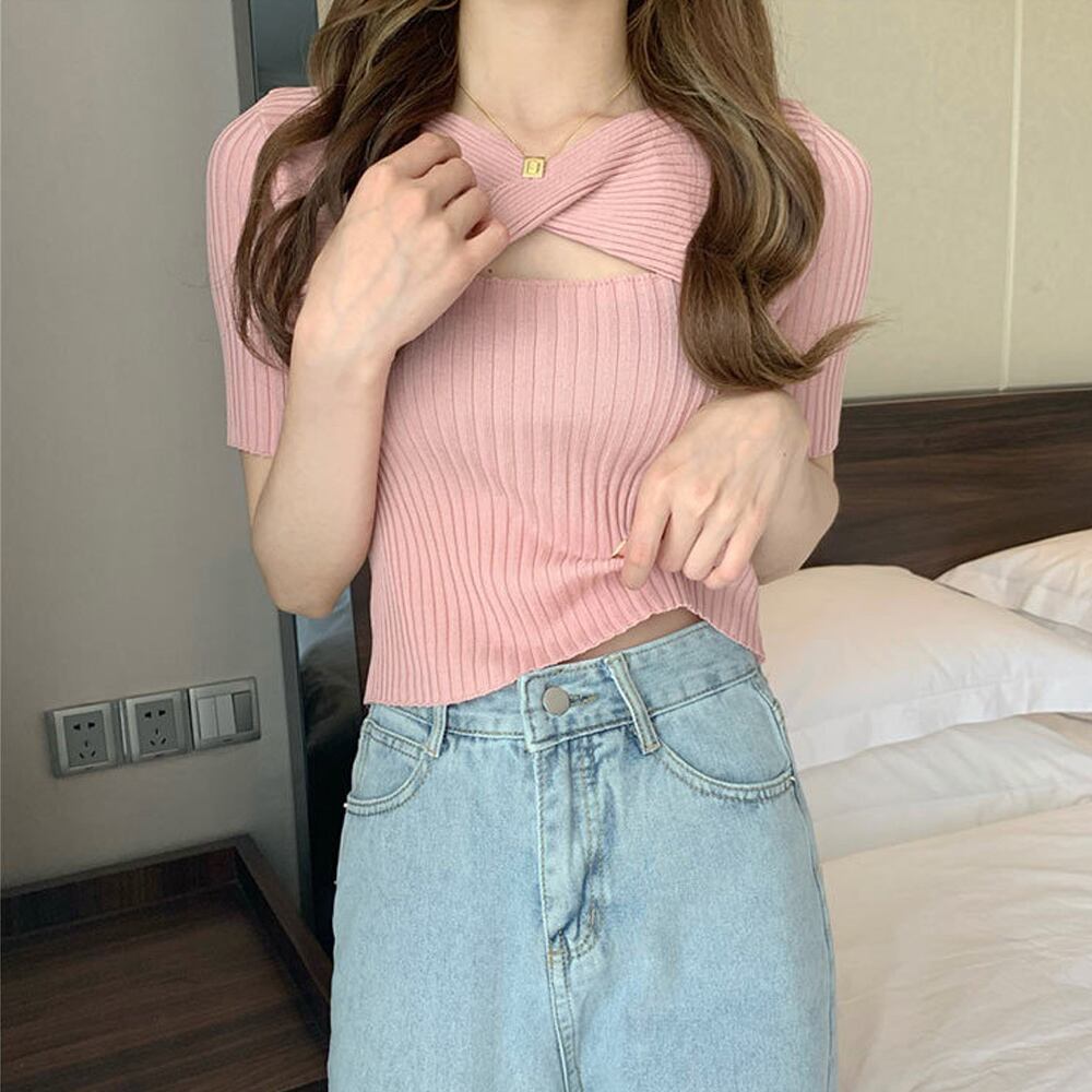 リブニットきれいめ セクシーニットソー カジュアルトップス