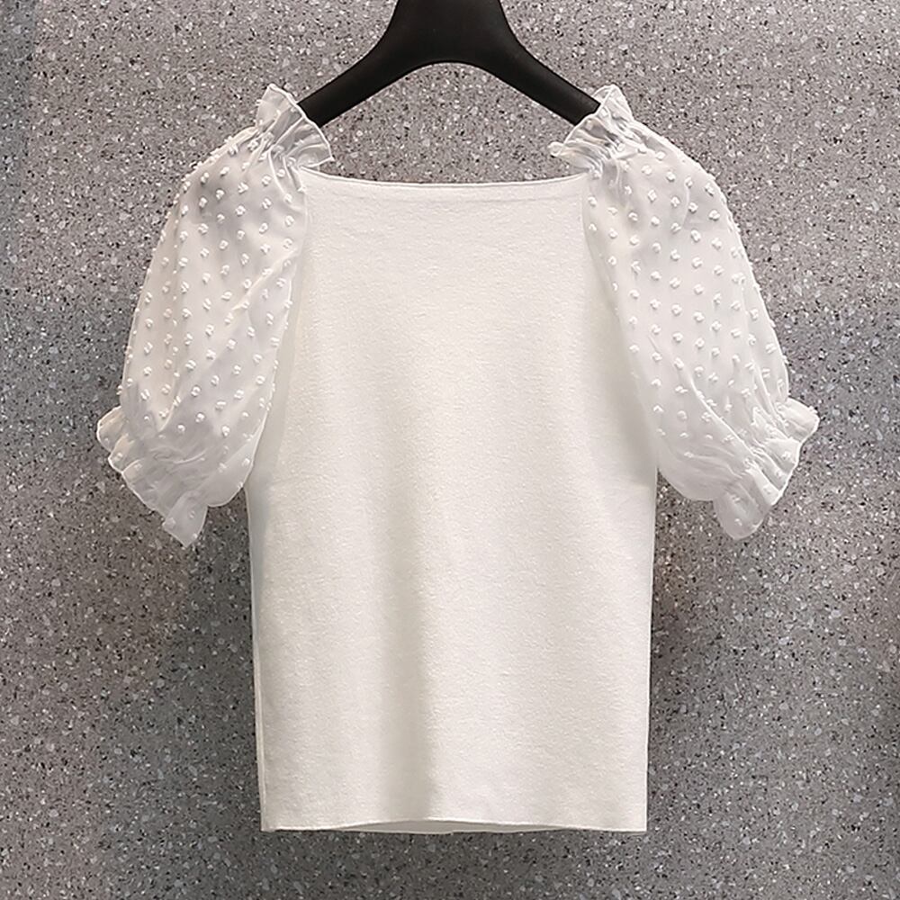 レディース お洒落 大人カジュアル 薄手サマーニット フェミニン パフスリーブ トップス 大人可愛い ニットブラウス