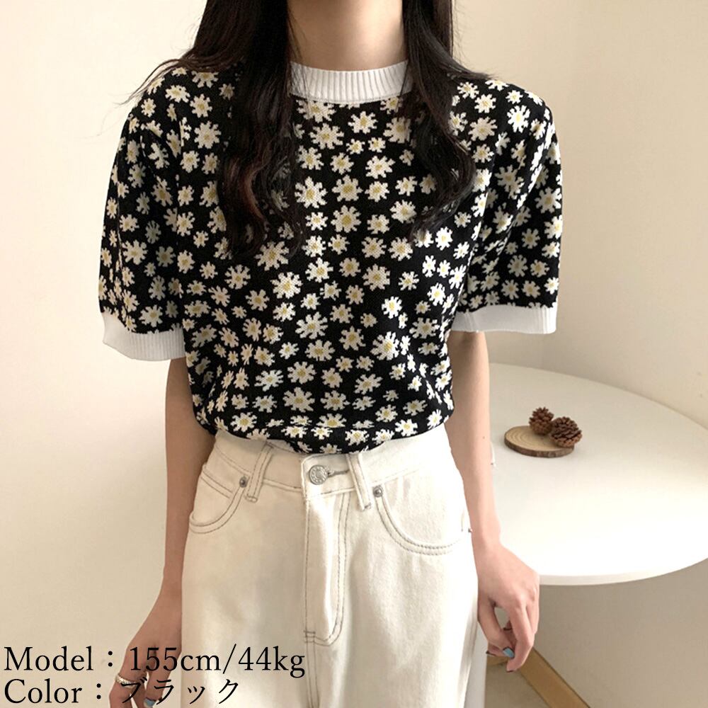 フラワー 半袖 きれいめ 韓国風