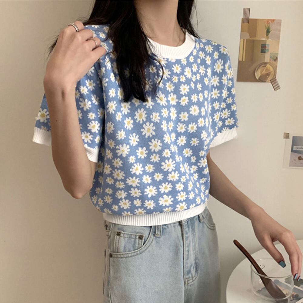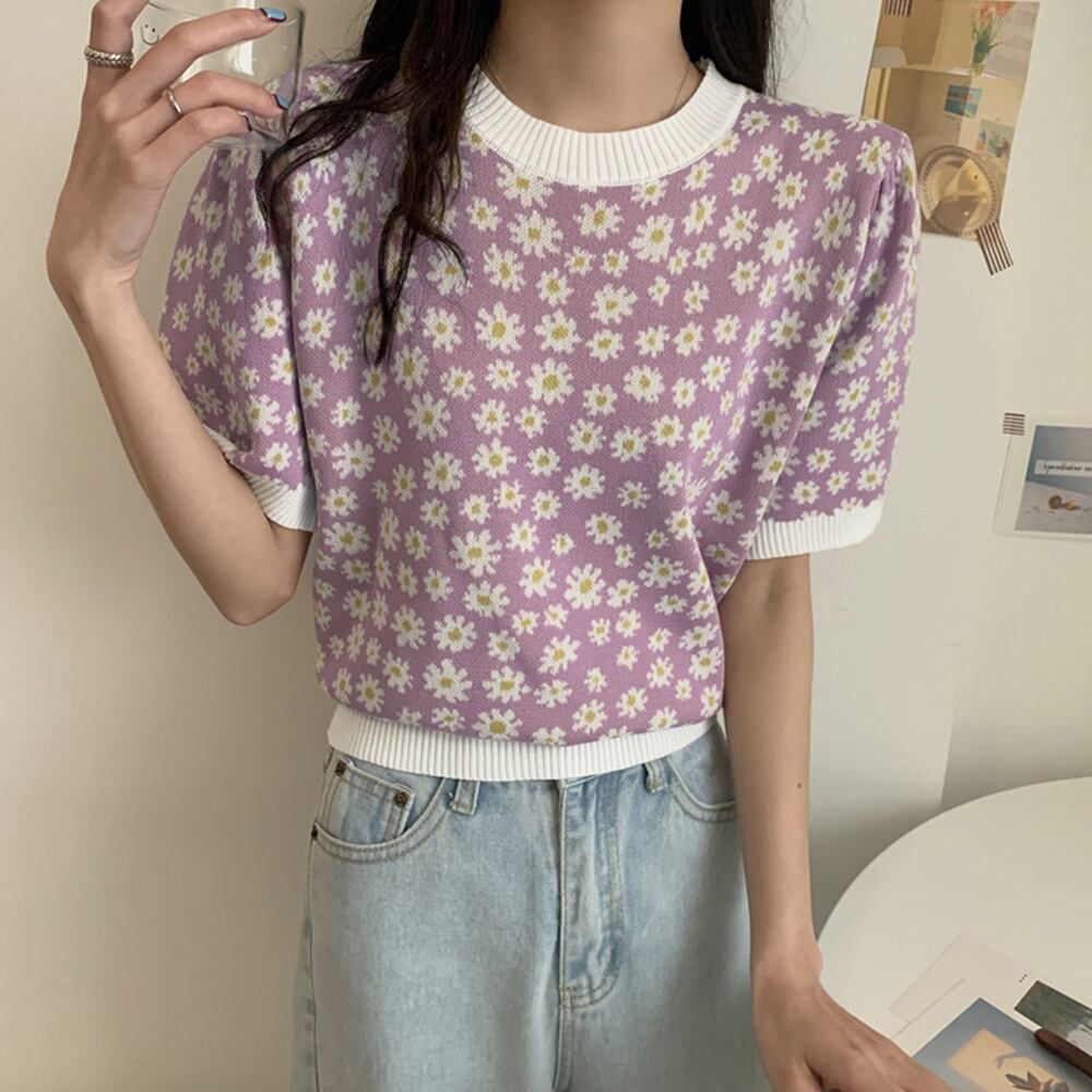 フラワーパターンの柄がかわいいサマーニットプルオーバー