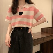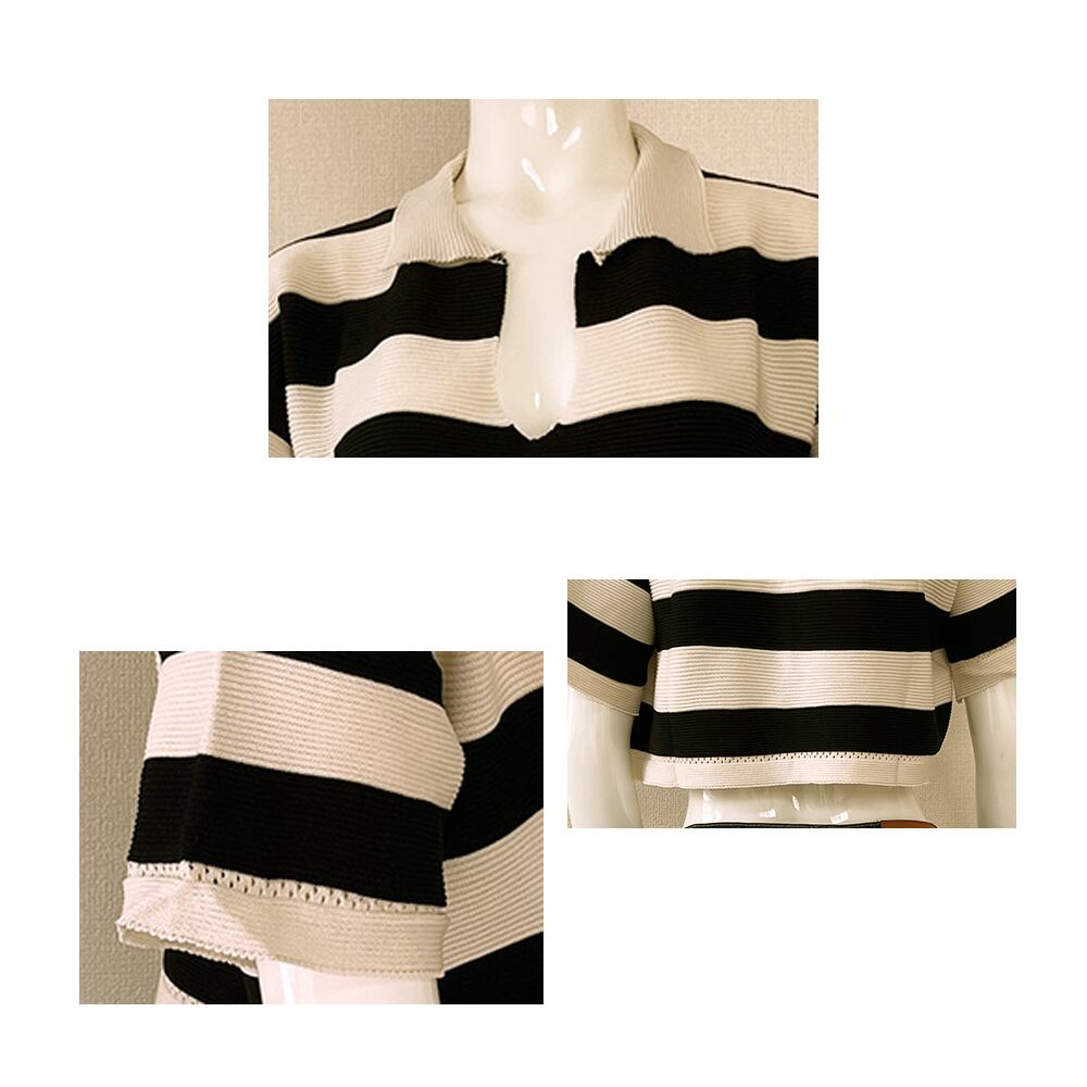 セクシー トップス 夏ニット ボーダー柄 プルオーバー トップス へそ出し ニットリブ ショット丈 ニットソー