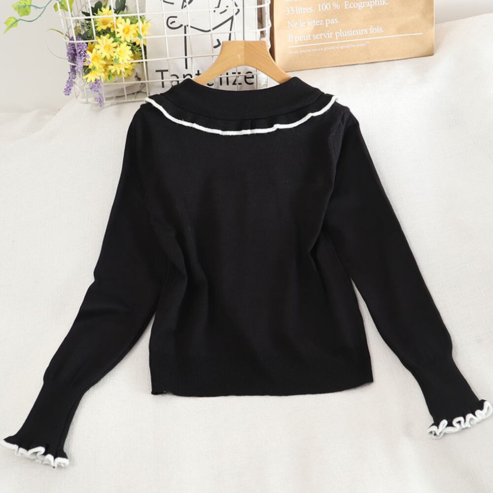 ニットセーター お洒落 大人可愛い ニットソー カジュアル 折り襟 ニットウェア 春秋 エレガント トップス