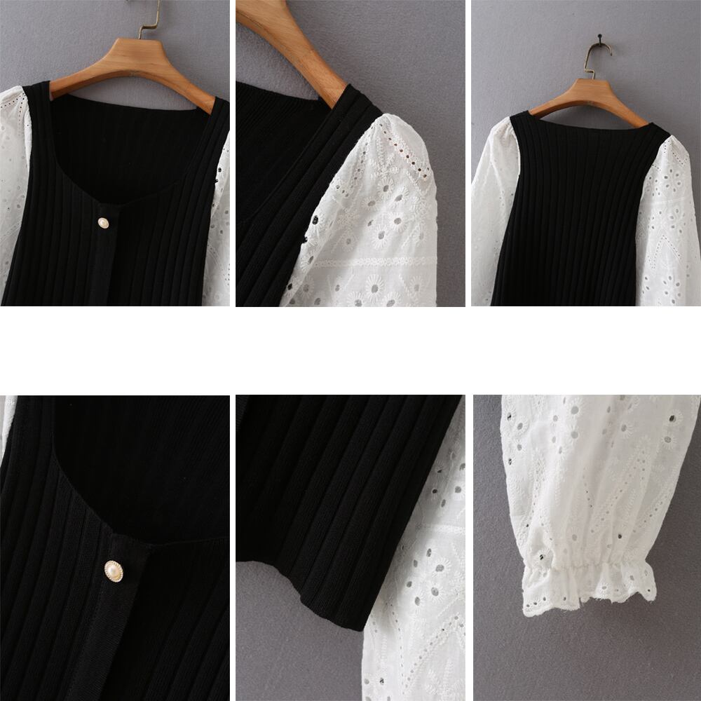 ボリュームのあるレース素材の袖がキュートな印象を与えてくれるニットトップス
