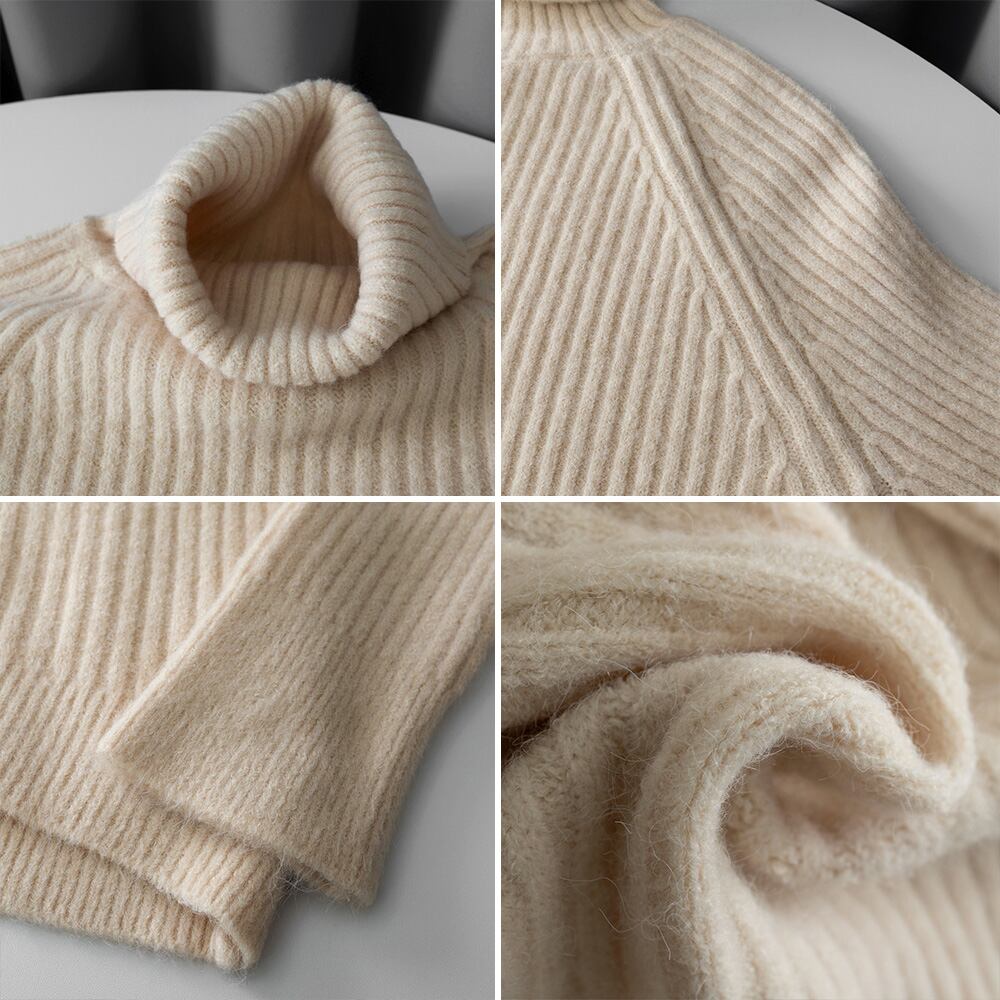 キュッと詰まった首元がエレガントさを強調してくれるタートルネックリブニットトップス
