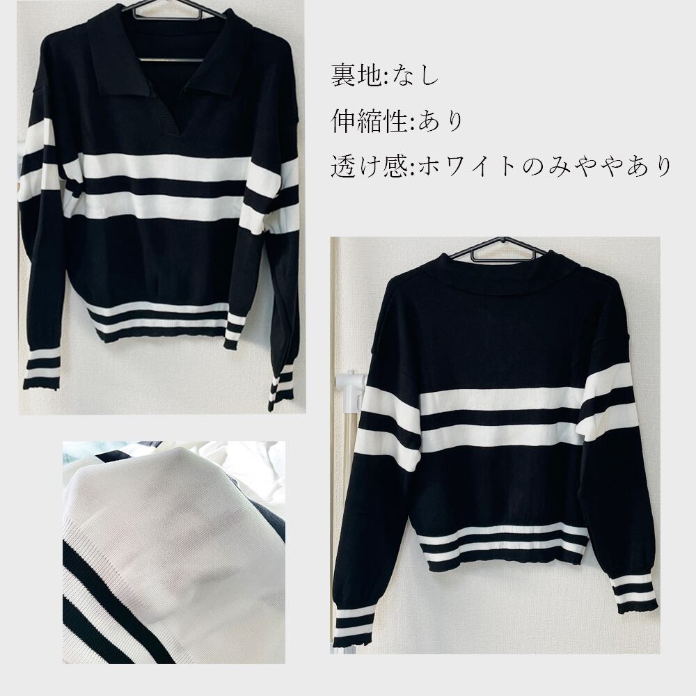 薄手ニット生地で優しい肌触りを与える、角襟のデザインもレトロなお洒落感を演出するニットトップス