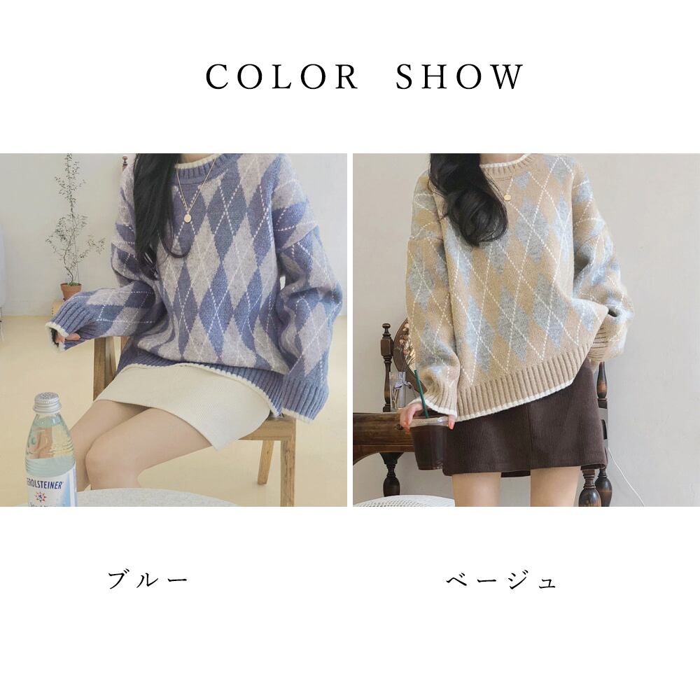 アーガイル柄 ニットトップス レディース