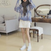 クルーネック レトロ 長袖 おしゃれ かわいい 韓国風 大人 カジュアル 幾何学柄 長袖ニットソー