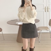 デニムパンツやスカートを合わせていただくとバランスの取れたコーディネートが完成