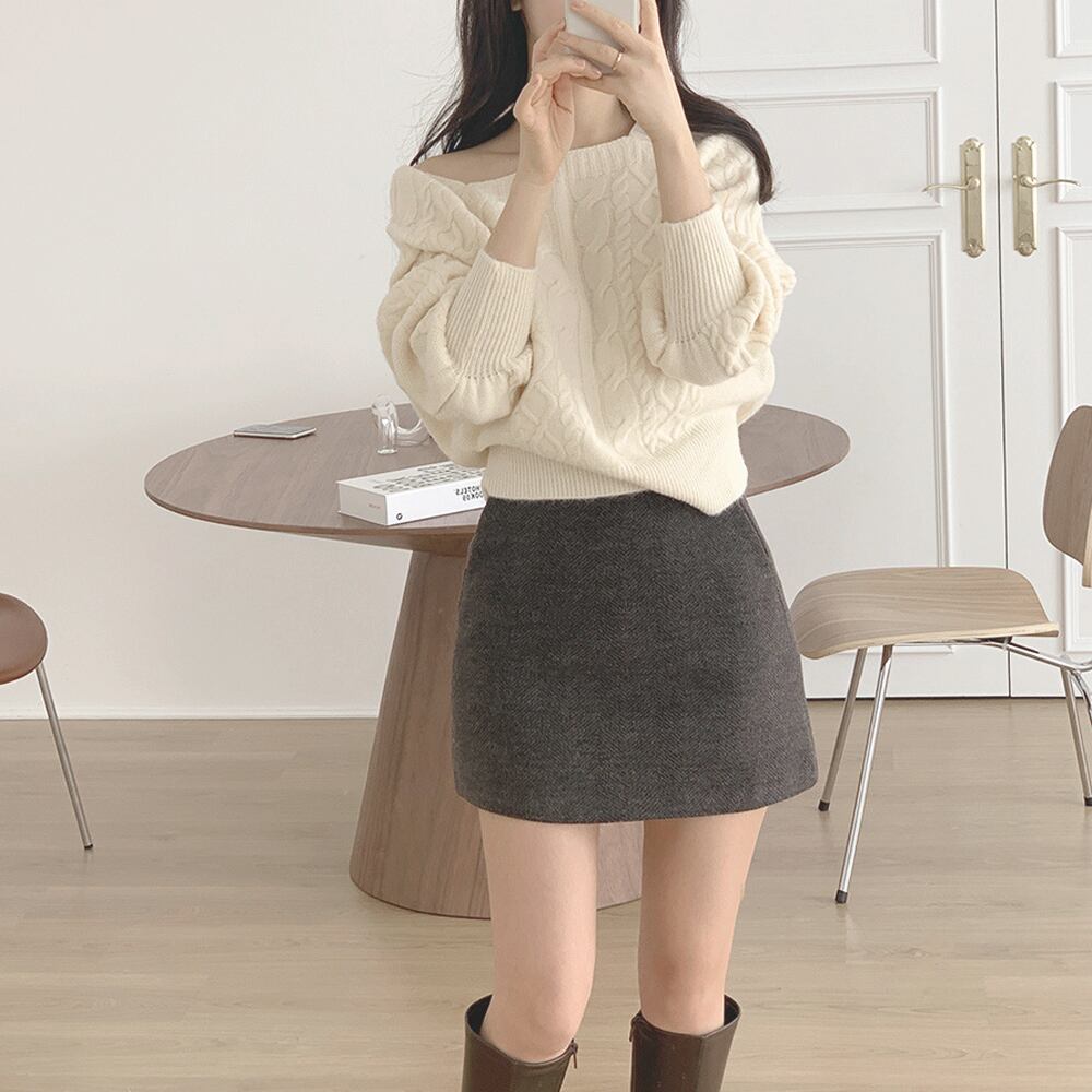 ニットソー 可愛い デコルテ見せ 大人ガーリーニット