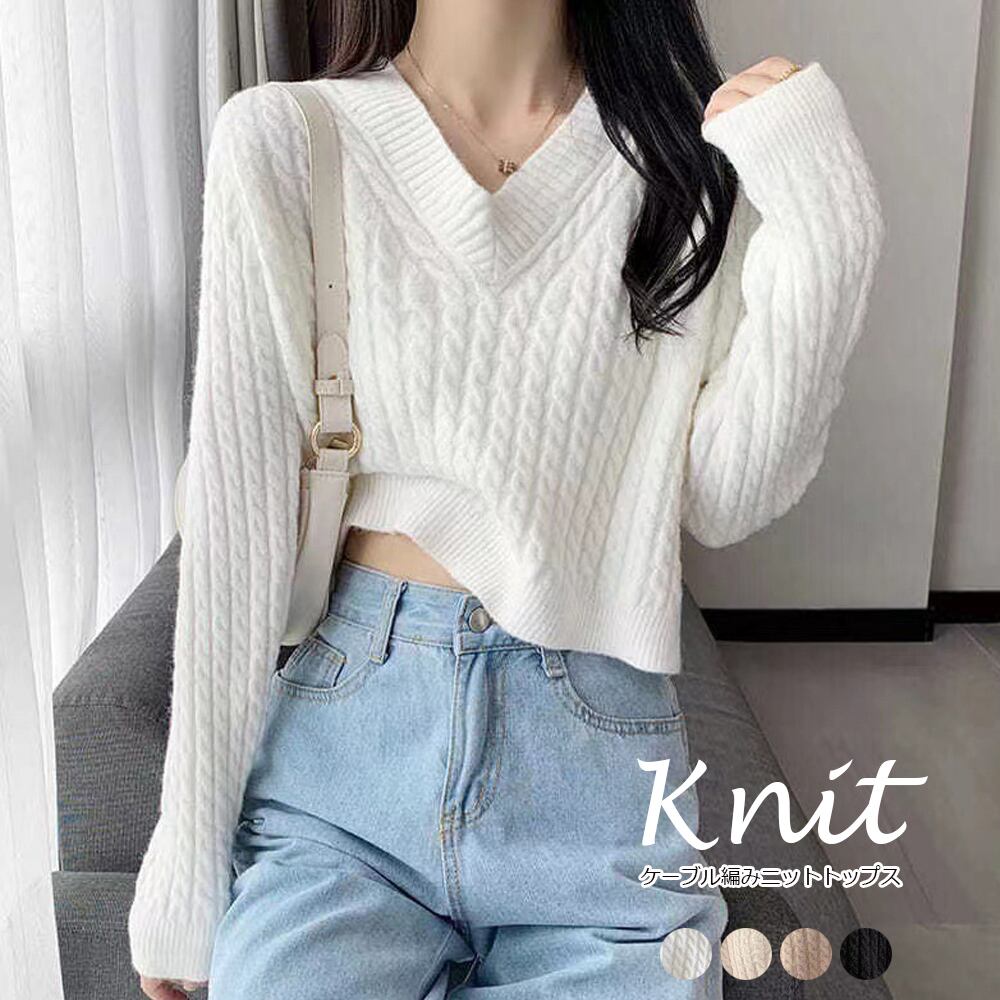 立体感のあるケーブル編みで柔らかいケーブルニットトップス