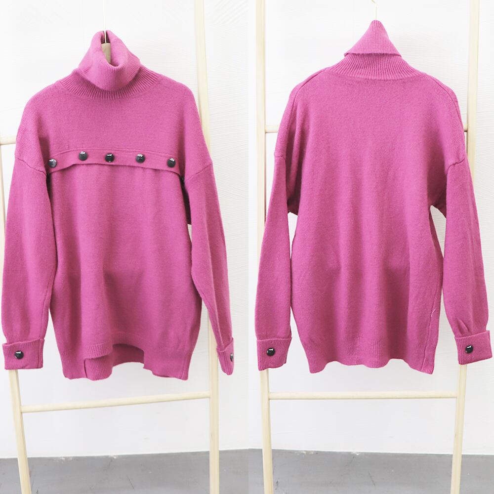 プルオーバー ニット レディース ハイネック あったか セーター 冬 無地 女子会 長袖 ボタン飾り
